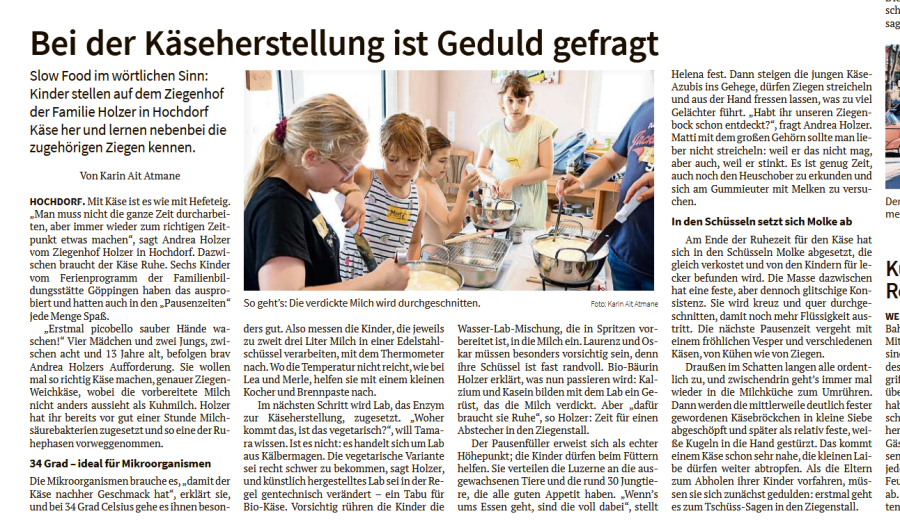 2025 Bericht in der Esslinger Zeitung über einen Kinder-Käsekurs in den Sommerferien